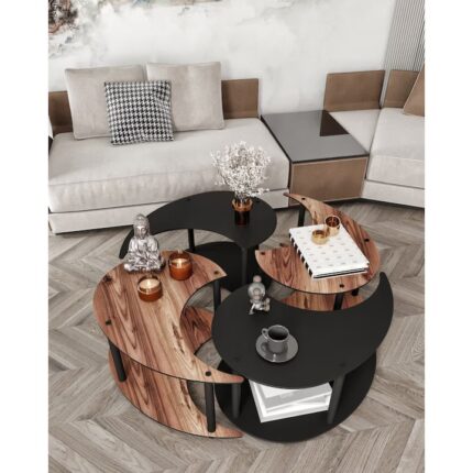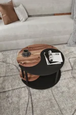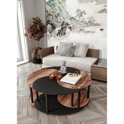 Тази средна маса Yin Yang Unity Serenity впечатлява с модерен дизайн и елегантен вид, добавяйки стилен акцент към всеки интериор. Кръглата форма и изискан черен орехов цвят се вписват лесно във всякакъв декор, като обогатяват атмосферата на вашия дом.