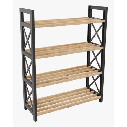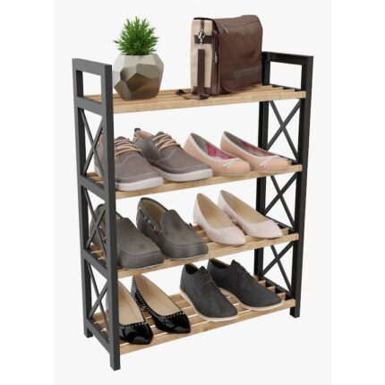 Поставка за обувки с 4 просторни рафта, органайзер за коридор, дърво и здрава пластмаса, 64 x 18 x 50 cm