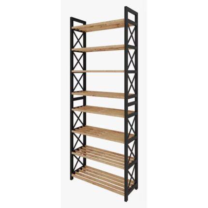 Етежерка с 8 просторни рафта, дърво и здрава пластмаса, 126 x 18 x 46 cm