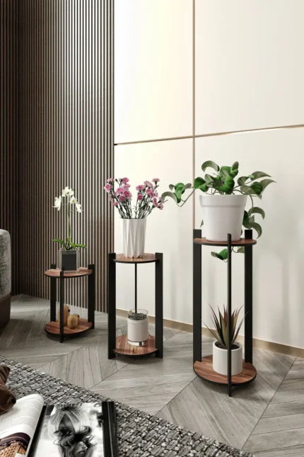 Комплект от 3 броя кръгли орехови поставки за цветя