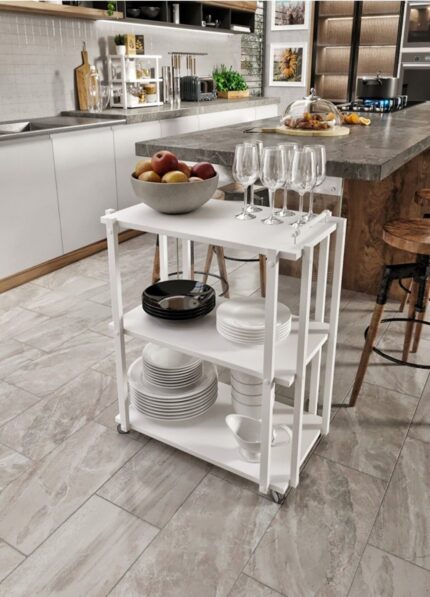 Сервант за хранене, Woody Fashion, бял, 35x60x74см, дървени крака бели