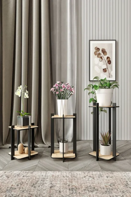 Комплект от 3 квадратни поставки за цветя – черен цвят