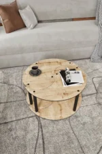 Изработена от сапфирен орех, масата впечатлява с издръжливост и дълготрайна употреба. С диаметър 70 см, повърхността предоставя удобно пространство за книги, чаши кафе и други предмети, позволявайки лесно и организирано подреждане.