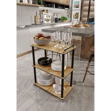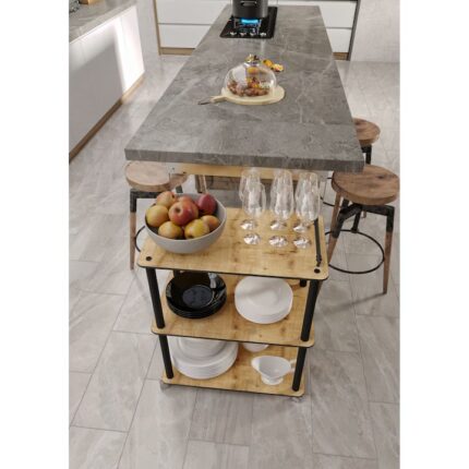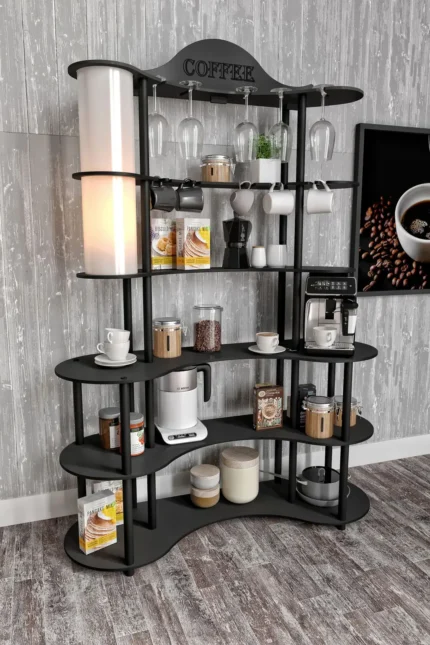 Многофункционална кухненска етажерка с осветление – черен цвят