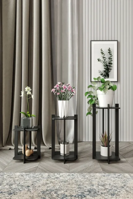 Комплект от 3 кръгли поставки за цветя – сапфирен орех
