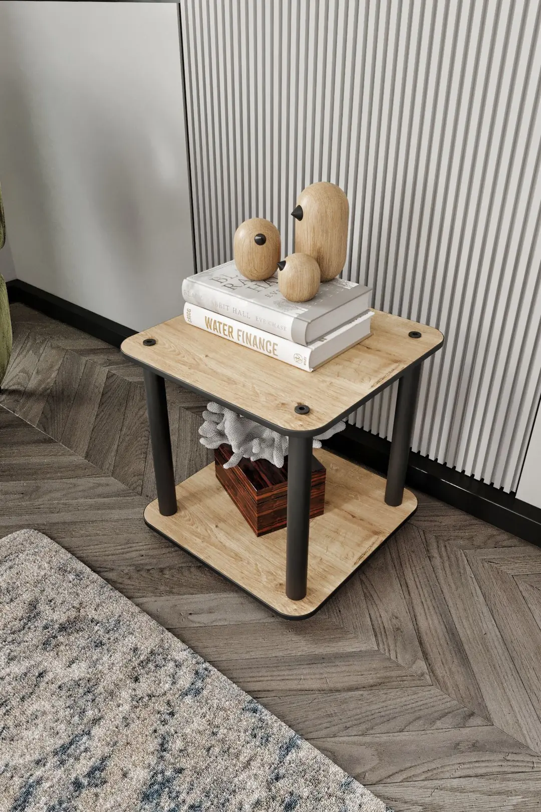 Начало Мебели Рафтове Декоративен двуетажен масивен рафт– правоъгълна етажерка, цвят сапфирен орех