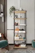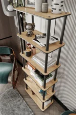 Декоративен масивен многофункционален рафт Safir от дъб със скандинавски дизайн. Шест нива осигуряват удобно пространство за съхранение на книги и декоративни предмети, а компактните размери 30 × 60 см го правят подходящ за различни интериори.