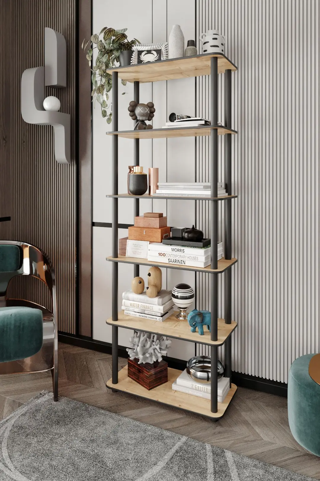 Декоративен масивен многофункционален рафт Safir, дъб – 6 нива, 30 × 60 см