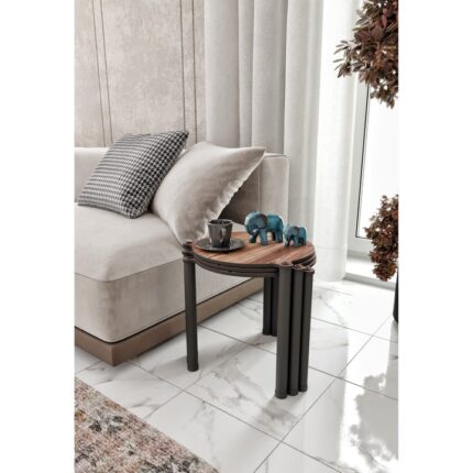 Комплект маси от 3 части, Woody Fashion, вложени, 34x40x34см, дървени крака, черен