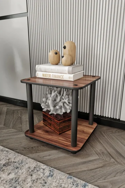 Декоративен двуетажен масивен рафт – правоъгълна етажерка, цвят мадран орех