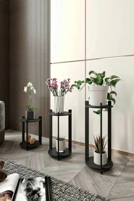 Комплект от 3 кръгли поставки за цветя – черен цвят