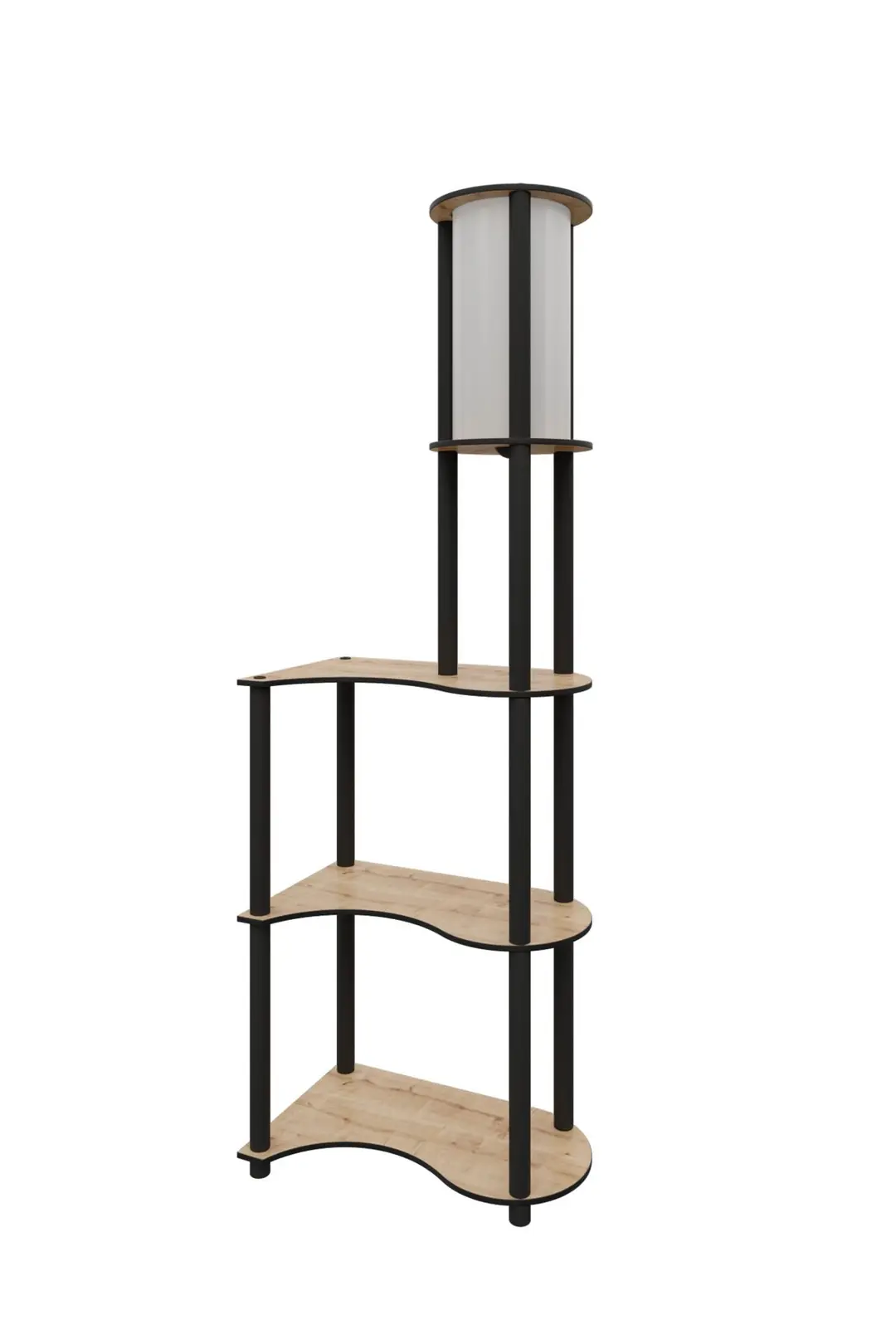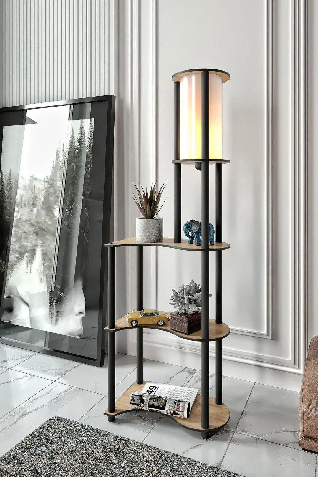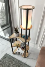 Лампионът съчетава стилен дизайн и практичност и е подходящ за хол, спалня или офис, като предлага и допълнително пространство за книги, аксесоари или декоративни предмети.