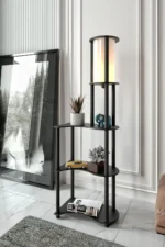 Лампионът с декоративни рафтове е лесен за монтаж, изработен от екологичен MDF по европейски стандарти и безопасен за дома. Разполага с E27 осветление, 2-метров кабел с ключ и стилен абажур, подходящ за хол, спалня или офис.