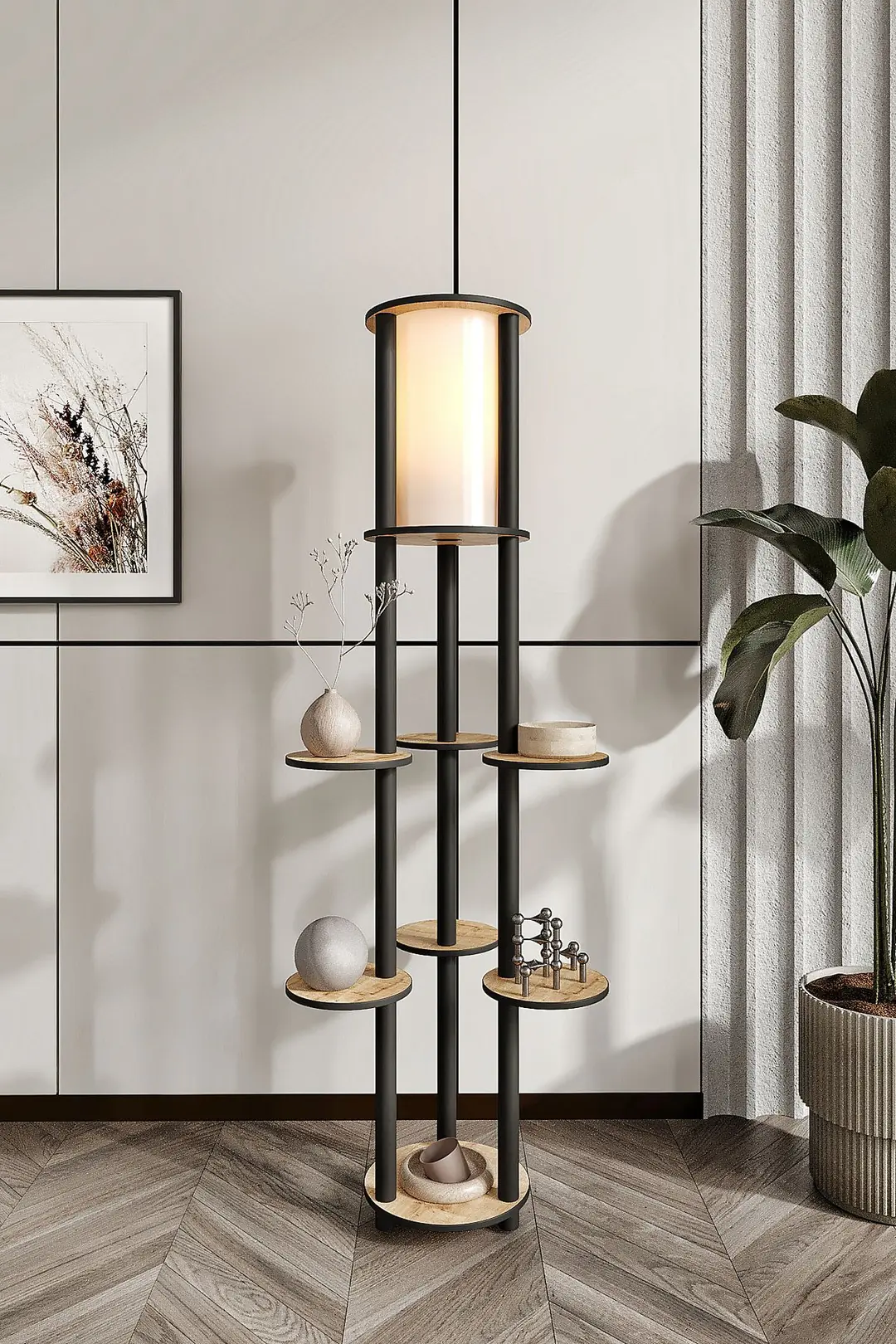 Начало Мебели Подови лампи Лампион Volante с рафтове – цвят дъб