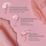Формулата му е базирана на три активни съставки, извлечени от сьомга – нискомолекулярен колаген, Salmon DNA (PDRN) и Salmon Proteoglycan, които укрепват кожната структура, подобряват фините линии и осигуряват дълбока хидратация.