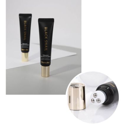 Farmstay Black Snail Premium Rolling Eye Serum е иновативен околоочен серум с висококонцентрирана охлювена слуз, създаден да се справя с бръчките, сухотата и признаците на умора около очите. Формулата е обогатена с ниацинамид, аденозин, хиалуронова киселина и сквалан, които осигуряват интензивна хидратация, подхранване и изглаждане на кожата.