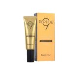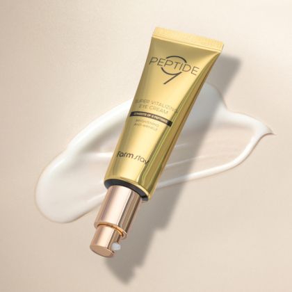 Farmstay Peptide 9 Super Vitalizing Eye Cream е интензивно подмладяващ околоочен крем, създаден специално за деликатната зона около очите. Формулата съдържа комплекс от 9 вида пептиди, които подпомагат възстановяването на кожната структура, подобряват еластичността и намаляват видимите признаци на стареене.