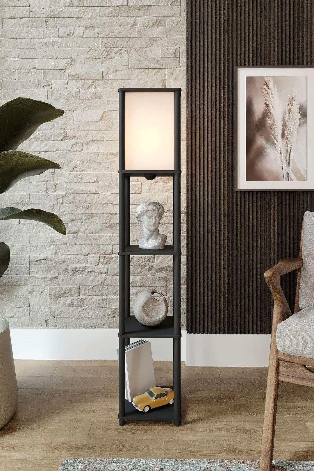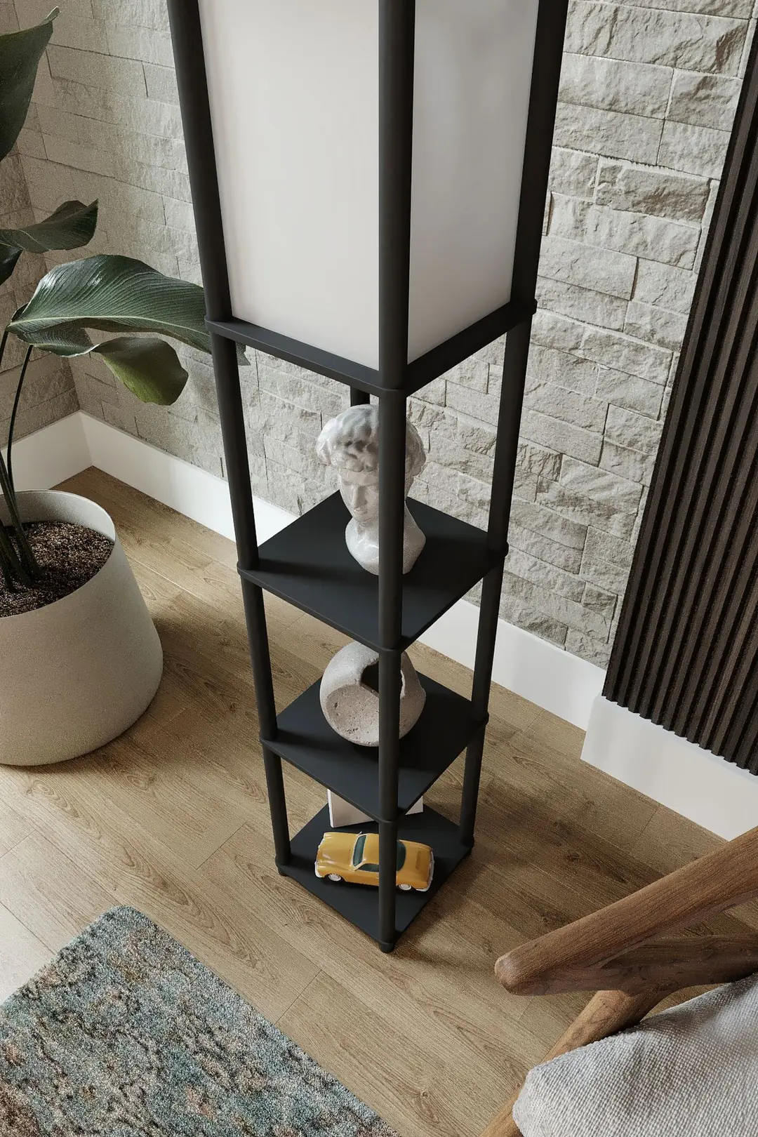 Начало Мебели Подови лампи Подова лампа с рафт-черен цвят