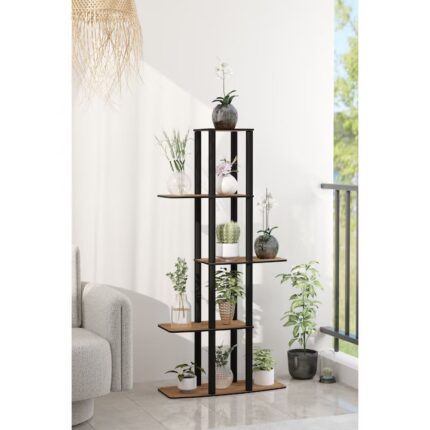 Дървена стойка за растения, Woody Fashion, модел Гардения, орех, 20x60x140см, дървени крака