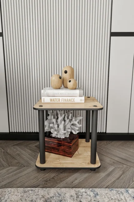 Декоративен двуетажен масивен рафт– правоъгълна етажерка, цвят сапфирен орех