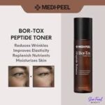 Medi-Peel Peptide-Tox Bor Lifting Toner 180 ml е иновативен подмладяващ тоник с лифтинг действие, създаден за видимо стягане и изглаждане на кожата. Формулата му е обогатена с пептиден комплекс и активни съставки с ботокс-подобен ефект, които спомагат за намаляване на фините линии и подобряване на тонуса на кожата.