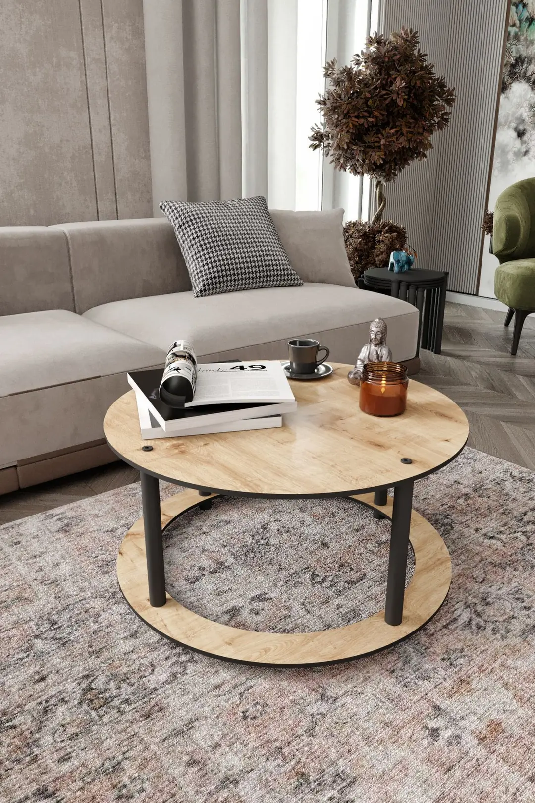Холна масичка HOLE Masivo – кръгла, радиус 70 см, сапфирен орех – стилна и практична масичка с лесен монтаж, здрава конструкция и просторна повърхност за всяка всекидневна.
