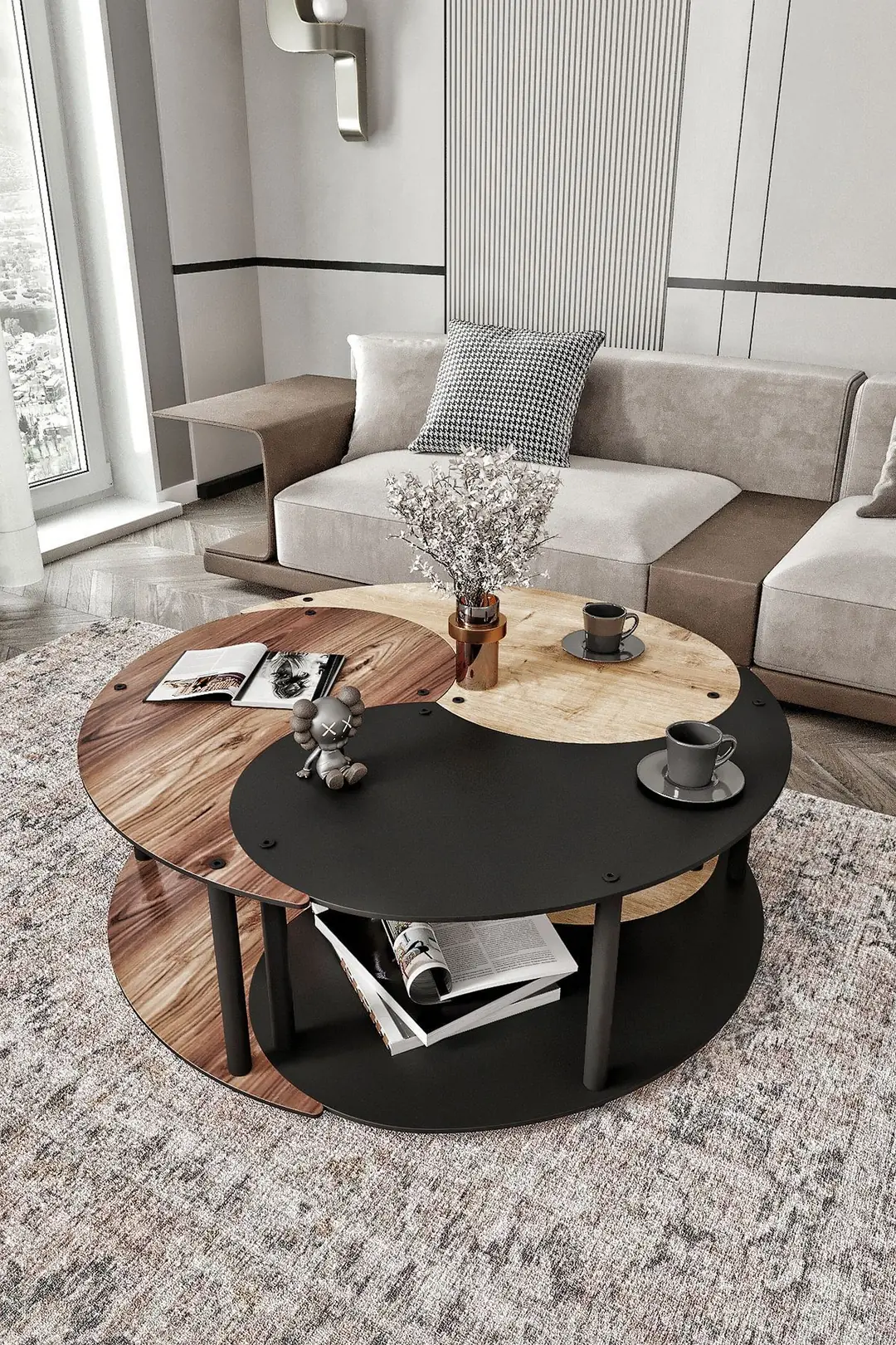Тази холна масичка Yin Yang Unity Serenity впечатлява с кръглия си дизайн и модерна визия, която придава елегантност и хармония на всяко пространство. Формата ѝ създава усещане за баланс и стил, превръщайки я в изразен акцент във всекидневната.