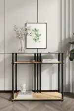 Декоративен двуетажен масивен рафт – правоъгълна етажерка, цвят мадран орех