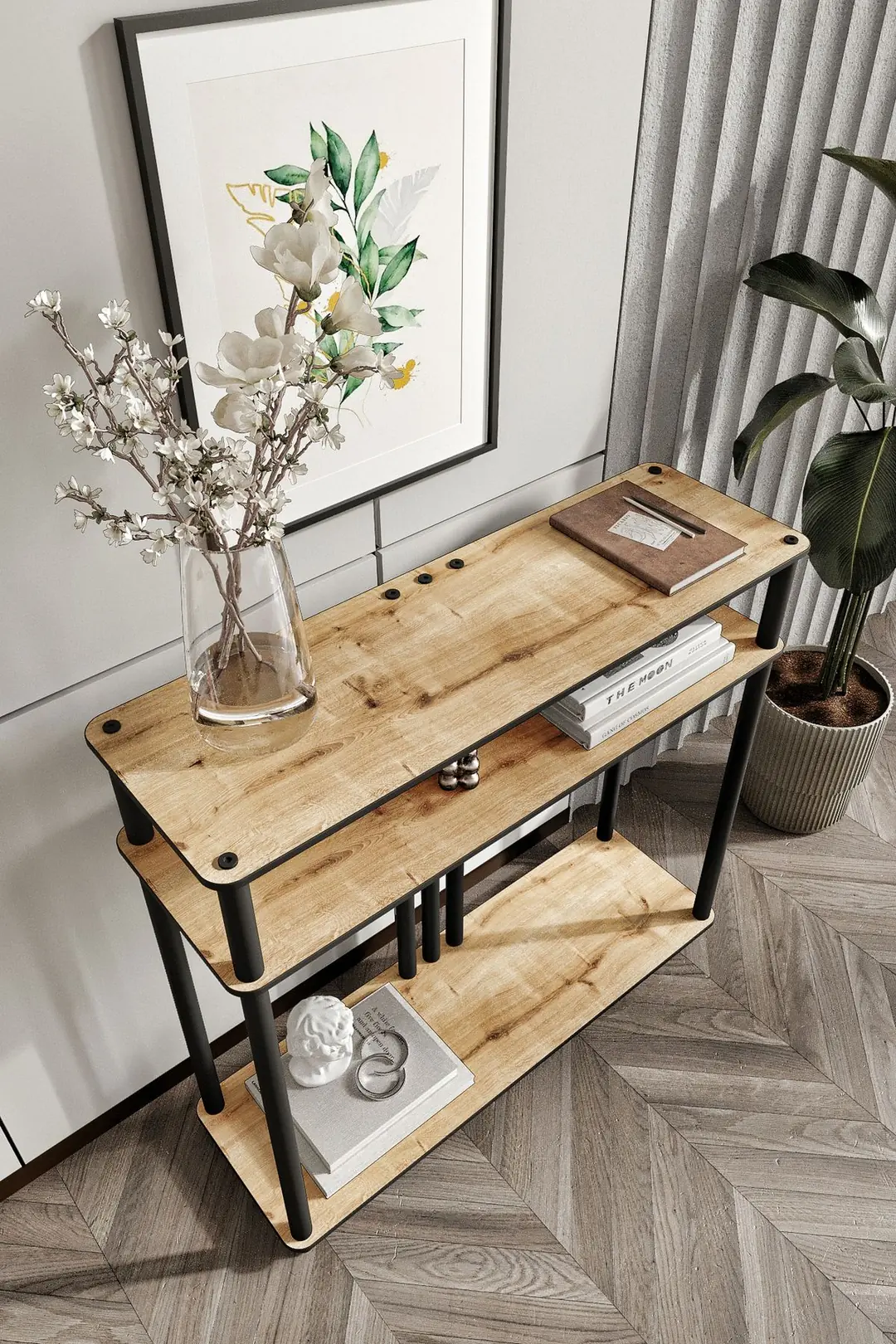 Този шкаф в цвят сафирен дъб съчетава стил и практичност, като добавя елегантност към интериора на вашия дом. Изработен е от здрав MDF материал, осигуряващ дълготрайна употреба. Рафтовата конструкция предлага удобно пространство за съхранение на книги, декоративни предмети и други аксесоари, като помага да поддържате дома си подреден и организиран. Шкафът има ширина 90 см и височина 83 см, а компактен дизайн 30 × 90 см позволява лесно позициониране дори в по-малки помещения. Разстоянието между долния рафт е 59 см, а между горния рафт – 17 см, което осигурява функционалност и удобство при ежедневна употреба. Модерният му дизайн го прави подходящ както за дневна, така и за коридор или спалня, придавайки стилен акцент на всяко пространство.