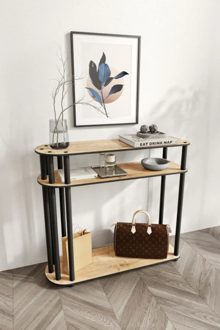 Декоративен двуетажен масивен рафт – правоъгълна етажерка, цвят мадран орех