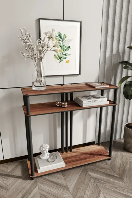Продуктът представлява шкаф с модерен дизайн, който придава елегантност и стил на интериора на вашия дом. Изработен е от качествен MDF материал, осигуряващ здравина и дълготрайна употреба. Рафтовата му конструкция предлага практично място за съхранение на книги, декоративни предмети и аксесоари. С размери ширина 90 см и височина 83 см, както и компактен дизайн 30 × 90 см, шкафът е подходящ дори за по-малки пространства. Разстоянието между долния рафт е 59 см, а между горния рафт – 17 см, което го прави функционален и удобен за ежедневна употреба.