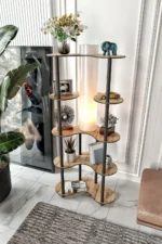 Messer декоративен лампион с рафтове придава стилен акцент на всяко помещение. Изработен от MDF 1-во качество, с E27 патронник и рафтове 65×35 см за книги или декорации.